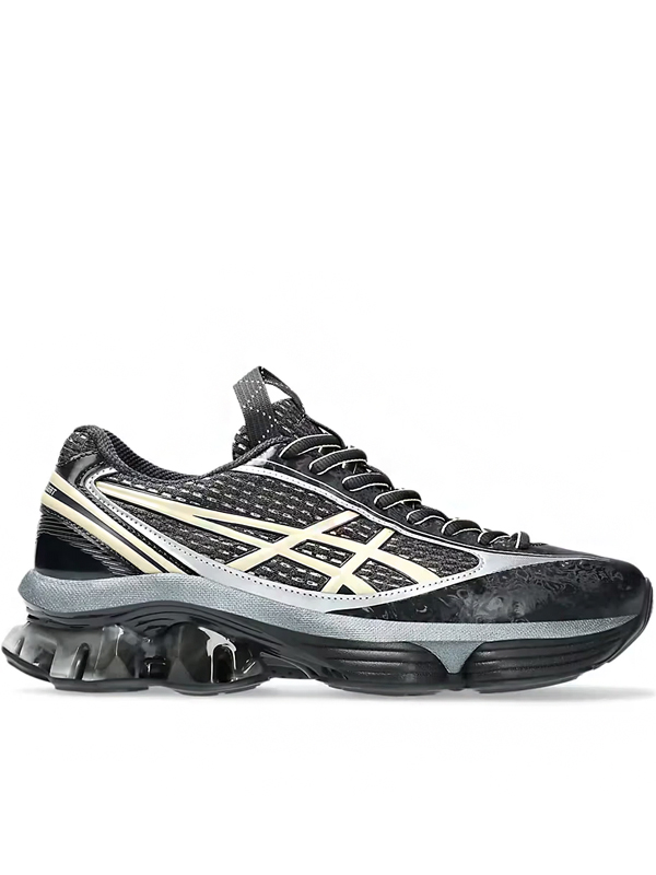 O conceito por trás do novo ASICS GEL Kinetic Fluent US6-S é inspirado nas “Grutas Isoladas”, uma ideia que se materializa através de camadas de mesh, painéis curvados de couro, ilhoses soldados e um design fluido que ecoa o trabalho da artista Edith Dekynd. Um detalhe marcante do diálogo entre Kiko e ASICS, a aba de puxar descentralizada, volta com destaque na língua do tênis.