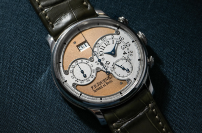 O relógio une design inovador e minimalista no calendário perpétuo, combinado pela primeira vez ao luxuoso visor na cor Salmão
