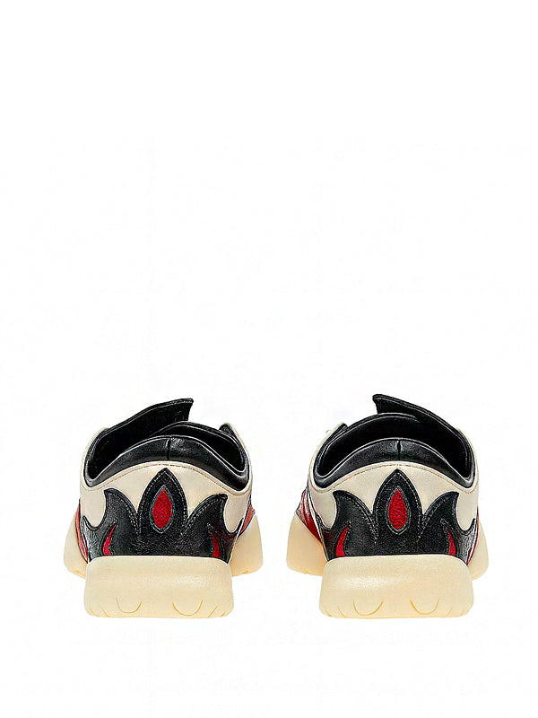 A entressola em EVA leve apresenta perfil levemente robusto com amortecimento equilibrado, proporcionando conforto estável para uso prolongado. O solado em borracha com recortes geométricos oferece tração funcional e acabamento futurista, consolidando um sneaker que transita com naturalidade entre o lifestyle conceitual e o streetwear de luxo