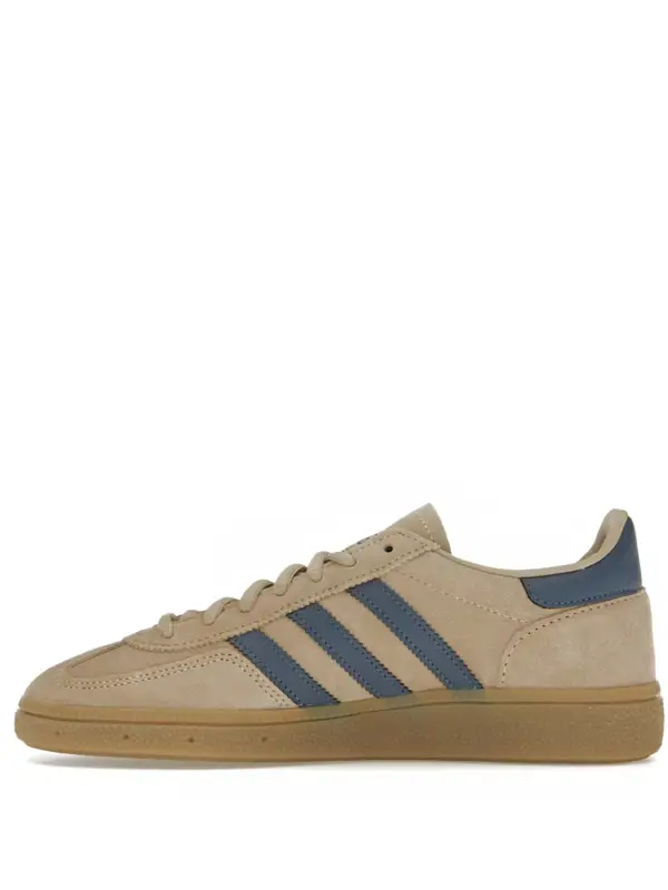 O Adidas Handball Spezial na combinação de cores Warm Sandstone/Preloved Ink/Gold Metallic é uma reinterpretação sofisticada de um clássico dos anos 70. Originalmente desenvolvido em 1979 para jogadores de handebol de elite, este modelo transcende as quadras e se estabeleceu como um ícone da moda urbana.