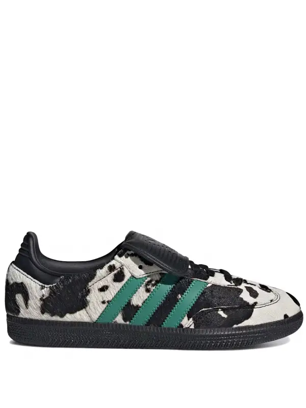 O Adidas Samba LT Cow Print Black White é uma interpretação ousada do clássico Samba, que mistura tradição esportiva com irreverência fashion. Nesta versão, o modelo mantém a estrutura icônica, mas ganha destaque pelo cabedal estampado em cow print (estampa de vaca), onde o contraste entre preto e branco cria um visual marcante, gráfico e urbano.