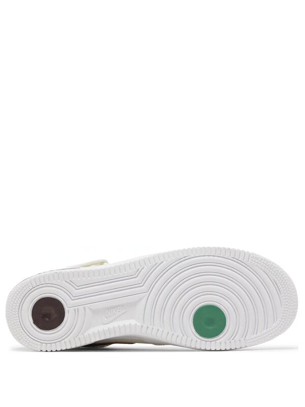 Os detalhes especiais do aniversário vêm na forma de 40 insígnias gravadas no calcanhar, uma marca na etiqueta da língua Nike Air e 82-22 impressas nas palmilhas. Dubraes e ilhós dourados, swoosh bordado tonal na tira de velcro no tornozelo e uma unidade de sola branca com pivôs marrons e verdes na sola completam o design desse maravilhoso Air Force 1 Mid ’07 LV8 40th Anniversary Sail Brown Basalt.