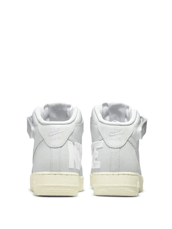 A Nike abandona o cabedal de couro tradicional neste Nike Air Force 1 Mid e o substitui por um couro mais durável, ideal para a temporada de outono. Construído a partir de uma tela branca imaculada em toda a parte superior, este Air Force 1 Mid Copy/Paste é tingido com detalhes tonais na marca Swoosh, atacadores, língua, forro interno e até nas tiras do tornozelo.