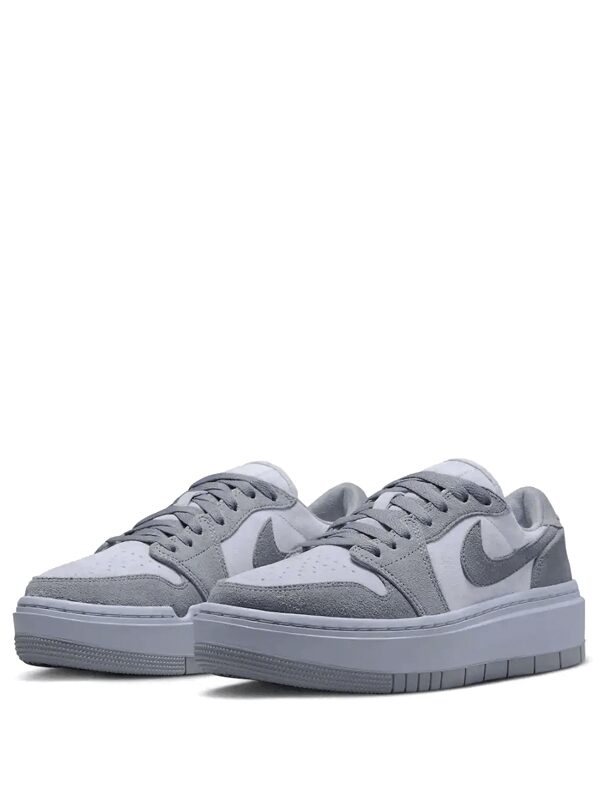 O Air Jordan 1 Elevate Low Stealth apresenta um tema monocromático consiste em uma reforma “Stealth/Titanium” em sua construção de camurça.