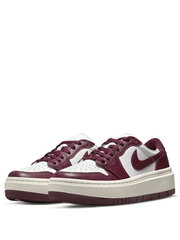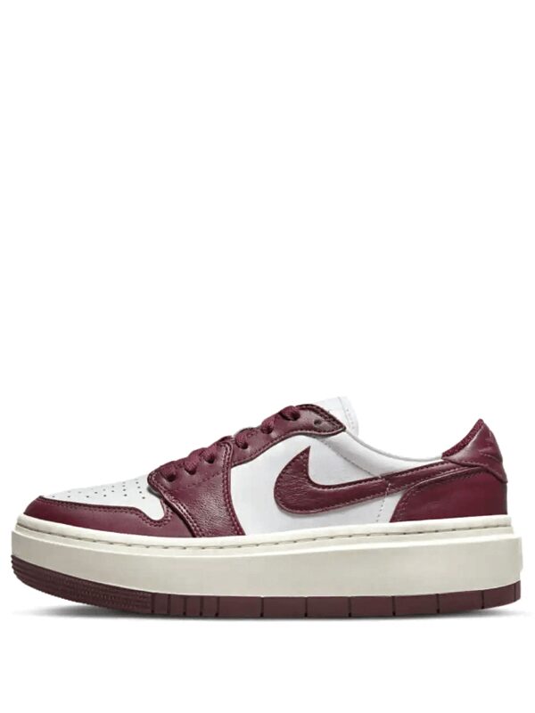 Com o amortecimento de espuma densa acrescenta altura e maior conforto. Apresenta-se na cor bordô e branco, com detalhes de logo Swoosh, recortes, perfurado, bico arredondado, fechamento frontal por amarração.