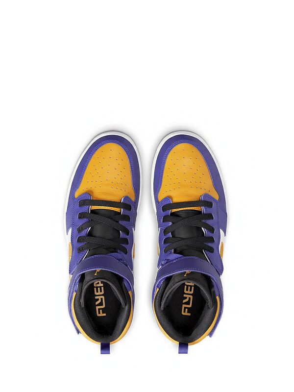 Recentemente, a versão modificada da silhueta original do Air Jordan 1 High FlyEase Lakers surgiu em uma combinação real de cores roxas e amarelos vibrantes que evoca a memória dos Los Angeles Lakers. Diferente de um Nike Dunk High de maio de 2021, o retrô recém-superiluminado cobre a maior parte superior em roxo e amarelo, não preto.