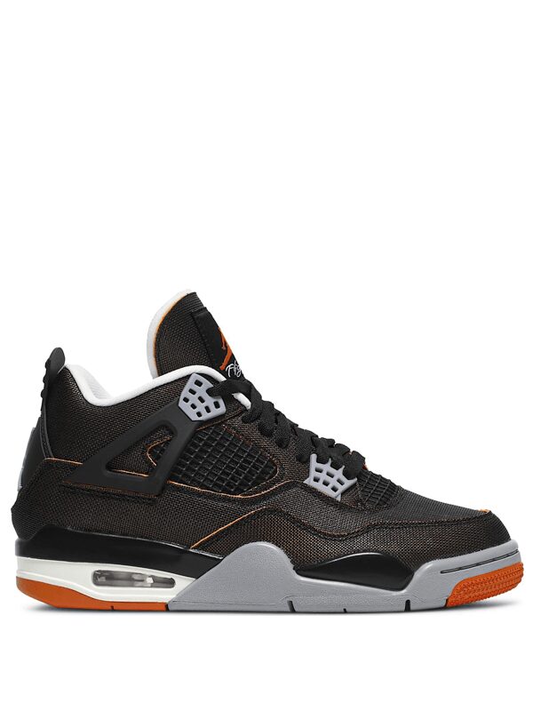 O Air Jordan 4 Retro Starfish inspirado na exploração do espaço, mostra a força e a beleza dos materiais técnicos usados em trajes espaciais. O cabedal é feito de malha metálica preta e laranja Starfish, complementado por abas no calcanhar e asas em TPU fosco.