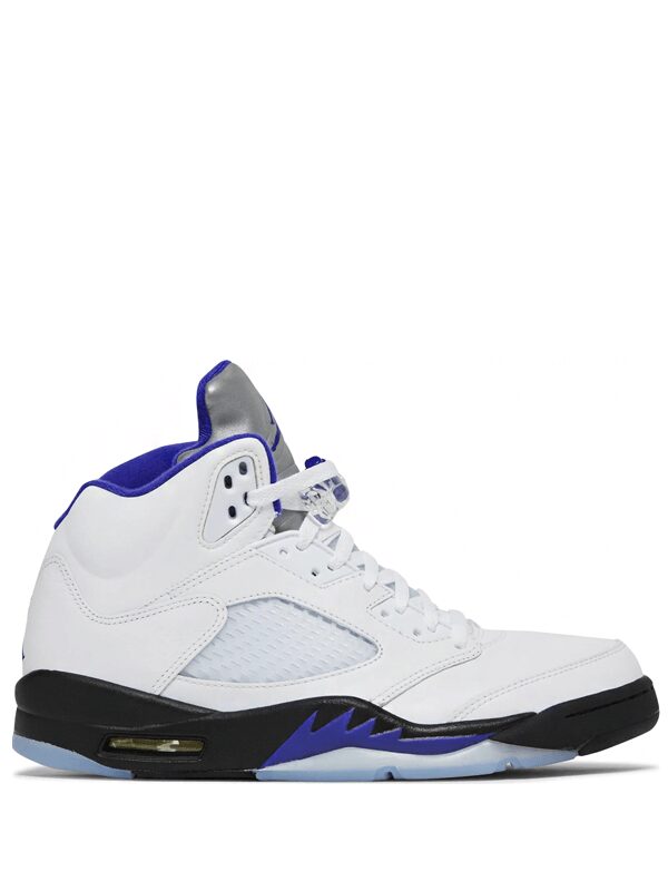 A Jordan Brand prestou homenagem a uma das cores mais icônicas do Jordan 11 com o Air Jordan 5 Dark Concord, em couro branco liso com camadas de TPU e línguas refletivas.