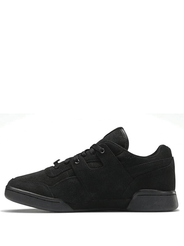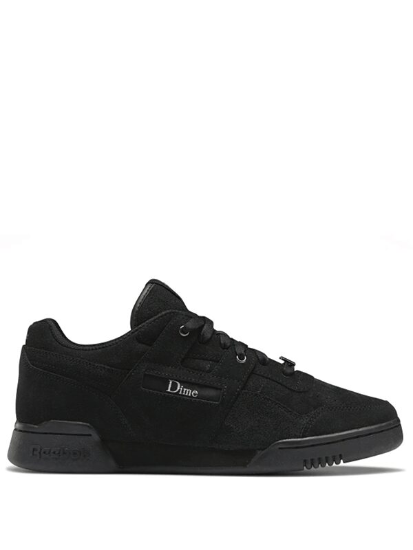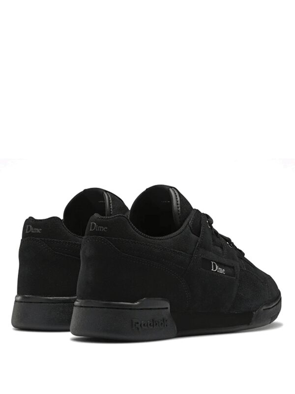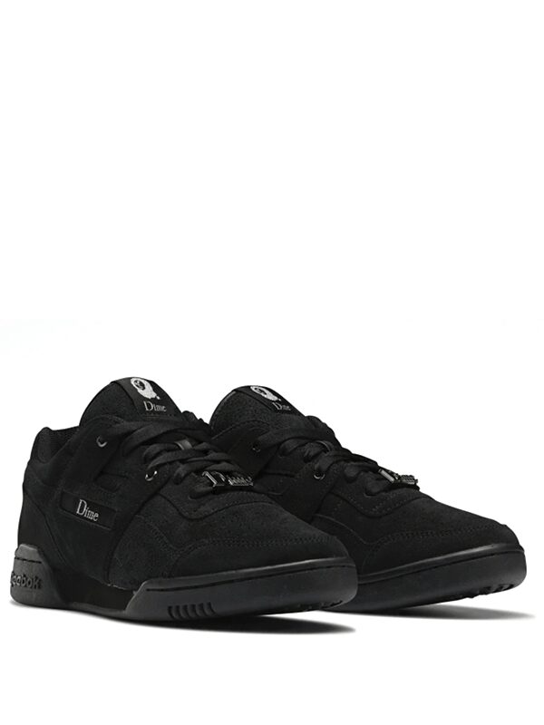A camurça de vestuário premium do Dime x Reebok Workout Plus Core Black dá um toque de luxo à parte superior, enquanto completamente vestida em preto com a marca branca por toda parte. Dubraes de renda de marca especial e palmilhas de marca completam o design.