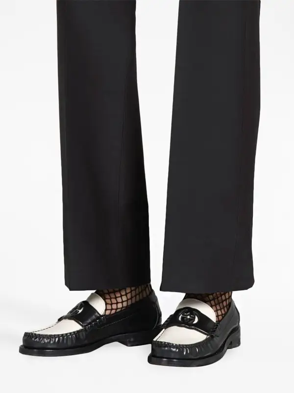 O Gucci Interlocking G Loafers Black White é uma verdadeira obra de arte que redefine o conceito de elegância casual. Este modelo, que exala sofisticação atemporal, é meticulosamente confeccionado em couro de alta qualidade, com uma tonalidade preta intensa que contrasta harmoniosamente com os detalhes brancos. A combinação de cores oferece um equilíbrio perfeito entre o clássico e o moderno, tornando o sapato uma peça essencial para aqueles que buscam um visual refinado, mas com um toque ousado.