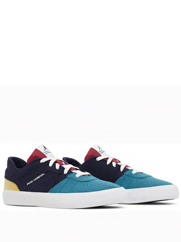Com uma paleta multicolorida ousada e materiais contrastantes, o tênis traz um espírito festivo para o design low-top da série Jordan. Os detalhes bordados e as frases “Dear Carnival” e “Family First” reforçam o aspecto narrativo do modelo, enquanto a silhueta casual garante estilo versátil para uso diário.