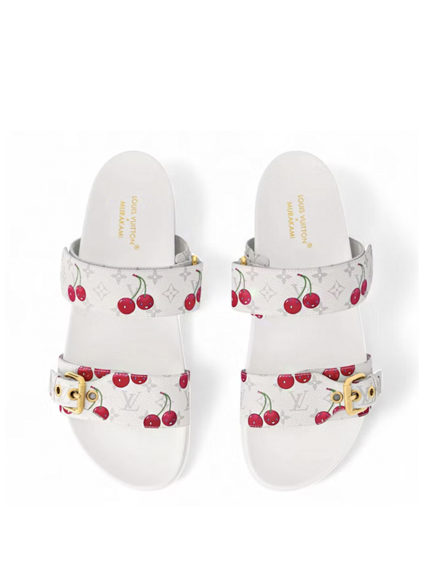 Louis Vuitton Cherry Bom Dia Flat Comfort Mule x Takashi Murakami White Monogram Cherry