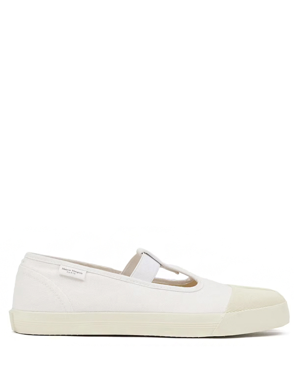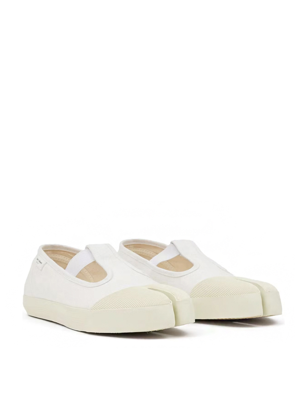 O Maison Margiela Tabi On The Deck Mary Jane White é uma interpretação ousada e contemporânea do icônico sapato Tabi, que combina o espírito náutico descontraído com o design conceitual da marca.