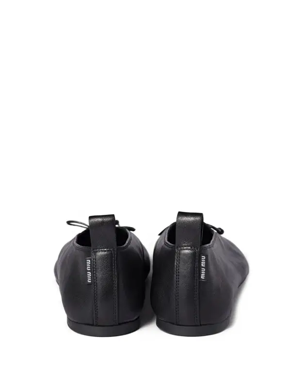 Clássica, minimalista e inegavelmente elegante, a sapatilha de couro com laço da Miu Miu é uma reinterpretação refinada de um ícone do vestuário feminino.