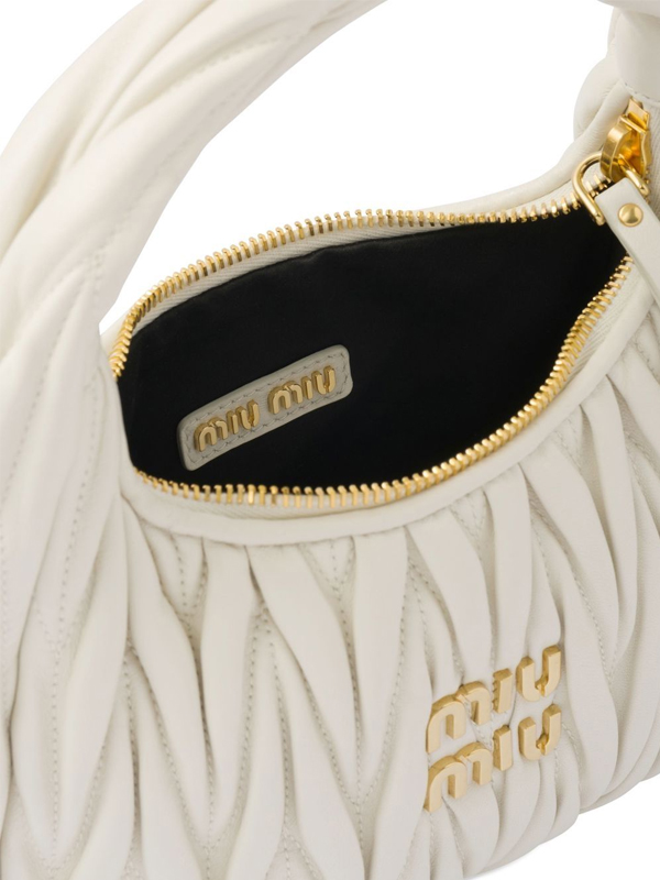 Miu Miu Wander Matelasse Nappa Leather Hobo Mini-Bag White