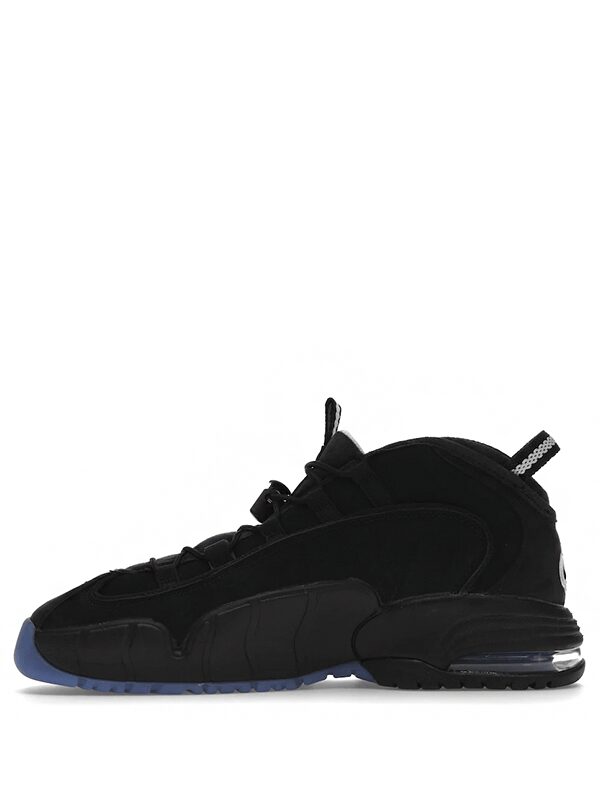 Este Nike Air Max Penny 1 Social Status Recess Black assume uma maquiagem inspirada no OG Orlando, pois o sapato é coberto por um nobuck preto com detalhes brancos nos painéis laterais.