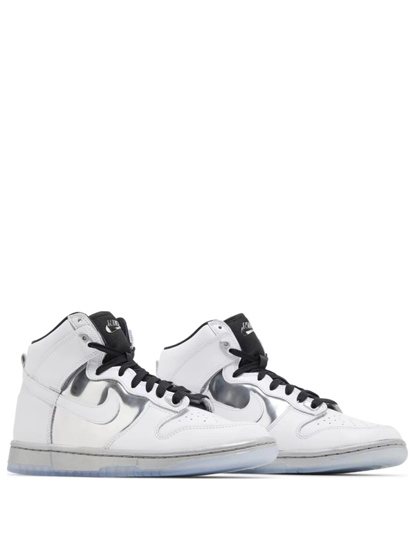 O Nike Dunk High continua a encontrar composições atraentes e díspares para se vestir enquanto se estende mais longe das silhuetas tipicamente conjuntos de dois tons. o Nike Dunk High Chrome vem com a proposta futurista imediatamente contrastada por tons pretos.