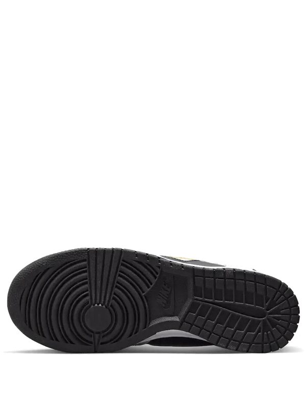 Este Nike Dunk High See Through White Black ostenta sua base preta usual com sobreposições brancas e Swooshes no topo de uma entressola branca e sola de borracha preta.