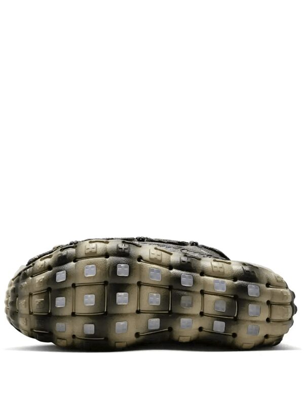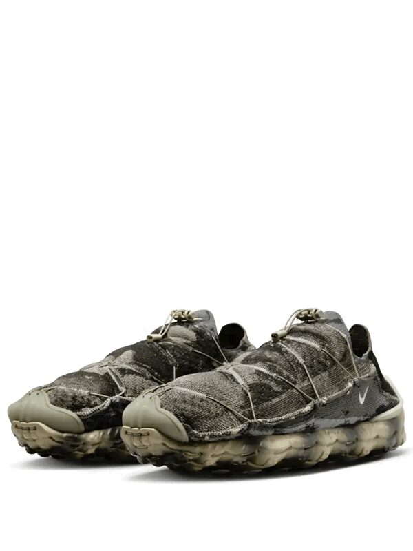 O cabedal do tênis é feito de materiais reciclados, incluindo malha de garrafa PET e sobreposições de borracha reciclada. O sistema de amarração é feito de cordas de escalada, proporcionando um ajuste seguro e personalizado. A entressola apresenta tecnologia Nike React para amortecimento responsivo e conforto durante todo o dia.