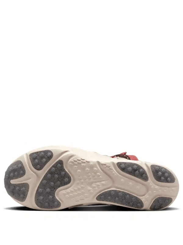 Nike ISPA Sense Flyknit Adobe and Bright Crimson apresenta-se em tom terroso e neutro, que é complementado por detalhes em Bright Crimson, um tom vibrante de vermelho. Esses detalhes aparecem nos cadarços, na sola e nos detalhes da lateral do tênis.