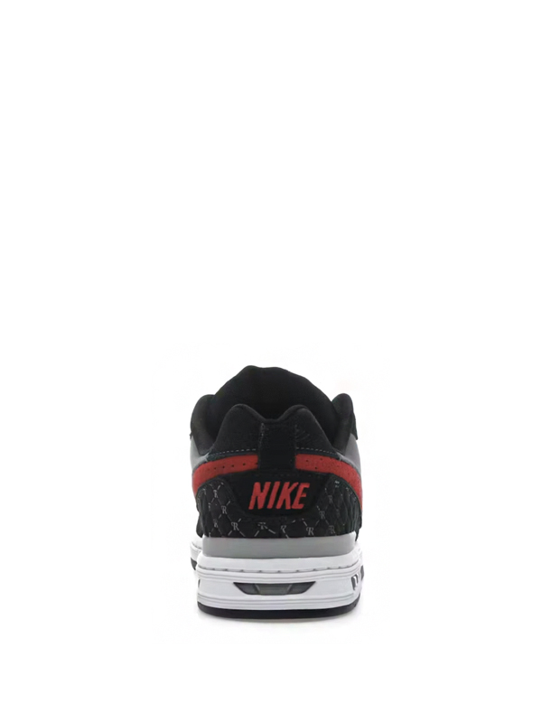 O cabedal combina suede preto premium, couro perfurado vermelho no Swoosh e painéis em nubuck cinza, criando uma estética contrastante e agressiva. O destaque fica para o painel traseiro, que exibe o padrão gráfico de “R” repetido, assinatura sutil de Paul Rodriguez. O colar acolchoado e a lingueta espessa reforçam o suporte, enquanto o forro têxtil respirável garante conforto durante sessões intensas de skate.