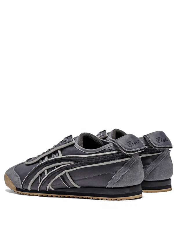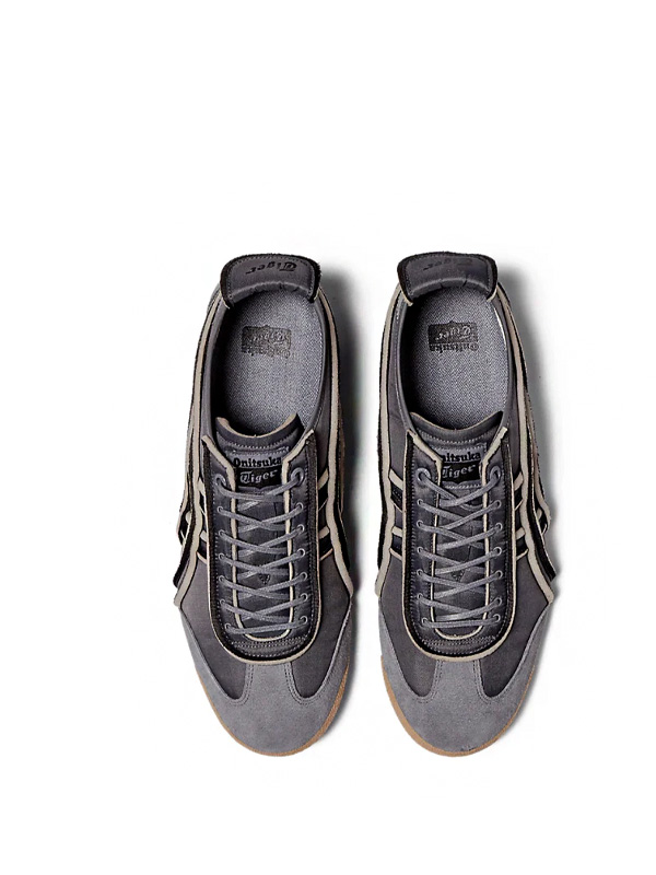 O cabedal é confeccionado em couro premium e suede macio, oferecendo textura rica e toque suave ao mesmo tempo. As icônicas listras laterais da Onitsuka Tiger aparecem em tom cinza tonal, preservando a identidade visual do modelo de forma sutil e elegante. A língua e o calcanhar trazem reforços acolchoados para maior conforto, enquanto a palmilha anatômica aprimora o suporte no uso prolongado. Pequenos detalhes metálicos e costuras precisas reforçam a sensação de qualidade artesanal e durabilidade.