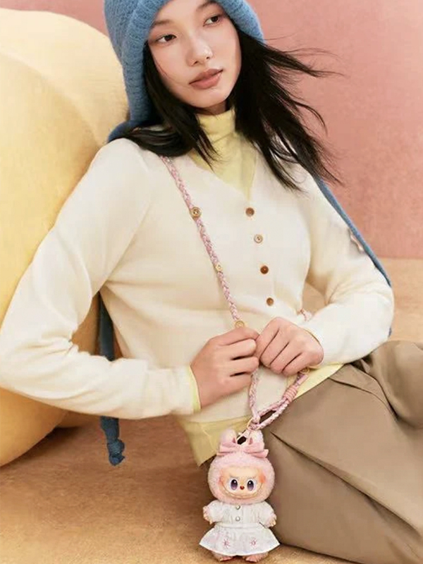 A edição Mokoko Fall into Sweaters da coleção Labubu The Monsters traduz o encanto das tardes frias em uma figura suave, delicada e cheia de aconchego. Inspirada nas texturas e no calor das roupas de tricô, Mokoko aparece vestindo um casaco de malha branca com botões prateados e uma saia bordada com pequenos motivos florais. O capuz felpudo com orelhas de coelho e laço rosa complementa o visual com uma doçura irresistível, evocando o conforto e a ternura do outono.