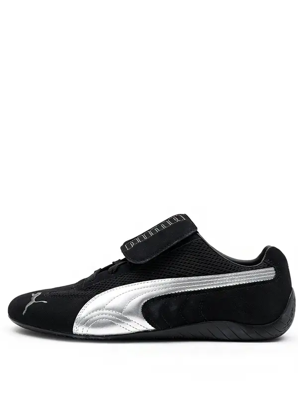 Este modelo apresenta um cabedal em camurça de alta qualidade na cor preta, combinado com painéis em malha que proporcionam respirabilidade e um visual moderno. A faixa lateral da Puma em cinza metálico adiciona um contraste elegante ao design. O fechamento é feito por cadarços tradicionais, complementados por uma aba de velcro sobreposta, permitindo um ajuste personalizado e um toque distintivo. Detalhes sutis, como o logotipo da Puma e da OPEN YY bordados, reforçam a identidade colaborativa do calçado.