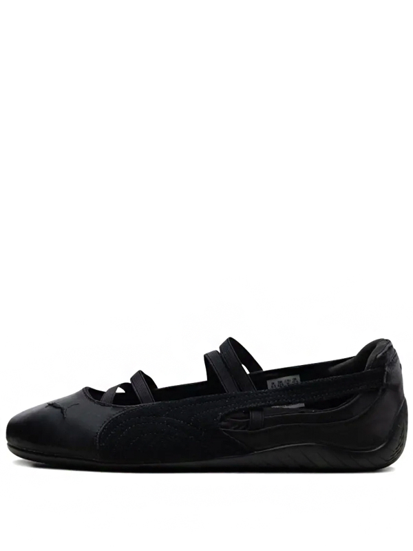 O PUMA Speedcat Ballet “Black/Cool Dark Grey” é uma reinterpretação elegante do clássico calçado inspirado no automobilismo, redesenhado com referências delicadas da sapatilha de balé. Com perfil baixo e forma ajustada, o modelo combina a estrutura aerodinâmica do Speedcat com tiras finas cruzadas no peito do pé, que adicionam um toque feminino e contemporâneo.