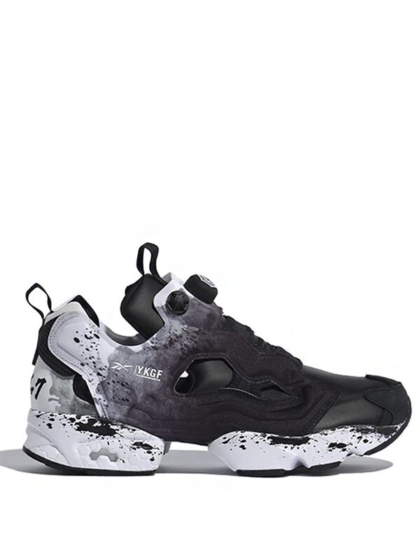Yoshio queria aproveitar o poder bruto e a presença inovadora do Instapump Fury no mundo dos tênis, apresentando tinta de caligrafia ousadamente manchada em todo o sapato, para permitir que os vários tons de tinta brilhassem para este modelo em particular.