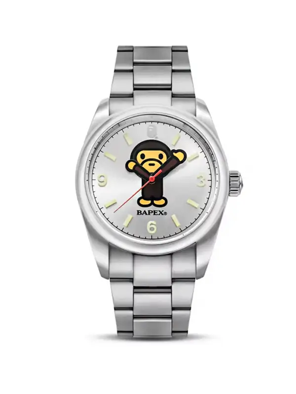 O Relógio BAPE Type 13 BAPEX Milo Silver é uma peça exclusiva que simboliza o DNA irreverente da A Bathing Ape (BAPE), unindo sofisticação relojoeira a elementos icônicos da cultura streetwear japonesa. Inspirado no estilo clássico dos relógios esportivos de luxo, este modelo traz a assinatura lúdica da marca através da presença do personagem Baby Milo, tornando-se um item colecionável que transita entre moda, estilo de vida e statement cultural.