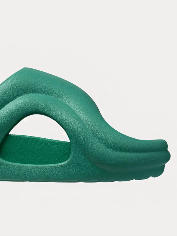 O cabedal é formado por uma faixa larga em material sintético de acabamento macio, apresentada no tom “Forest”, um verde profundo que remete à natureza e transmite sobriedade com frescor. A palmilha anatômica garante encaixe confortável, acompanhando a forma natural do pé, enquanto o solado em borracha leve oferece aderência e durabilidade, perfeito para uso em diferentes superfícies.