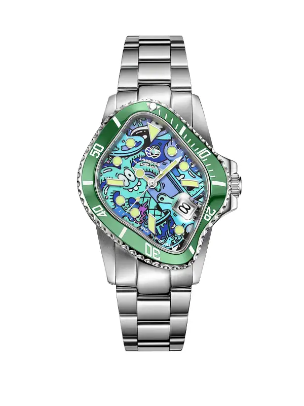 O Steven Harrington x Laarvee Relógio Night é uma colaboração artística que une o estilo vibrante e psicodélico do artista californiano Steven Harrington com a sofisticação minimalista da relojoaria contemporânea da Laarvee. Este modelo exclusivo traduz a visão criativa do artista em um acessório de luxo que funciona tanto como peça funcional quanto como obra de arte wearable, carregando identidade, cor e simbolismo.
