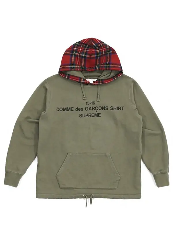 No Outono/Inverno de 2015, Supreme e COMMEdesGARÇONS lançaram uma colaboração. Uma das peças lançadas é este Olive – Plaid Hoodie.