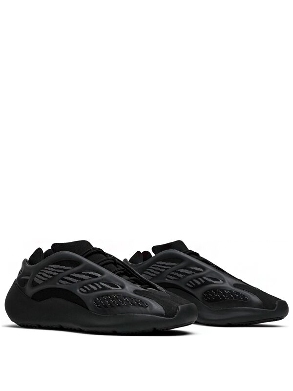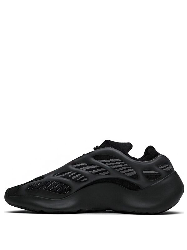 O adidas Yeezy 700 v3 Alvah, é composto por uma parte superior preta e cinza composta por malha de monofilamento com sobreposições de RPU para estrutura e durabilidade. É um dos designs mais sofisticados que vimos nas colaborações em andamento, brincando com forma, linha, textura e até mesmo expectativas