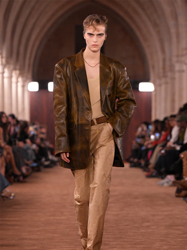 Peças como blazers de couro queimado, alfaiataria em branco impecável, e vestidos de renda desconstruídos questionaram os limites da identidade moderna. Com malhas recortadas, tanques com olhares oníricos e jeans desfiados, a coleção reinventou o visual das noites badaladas. Sapatos de salto afiado e botas estilo cowboy adicionaram um toque de sedução ao conjunto.
